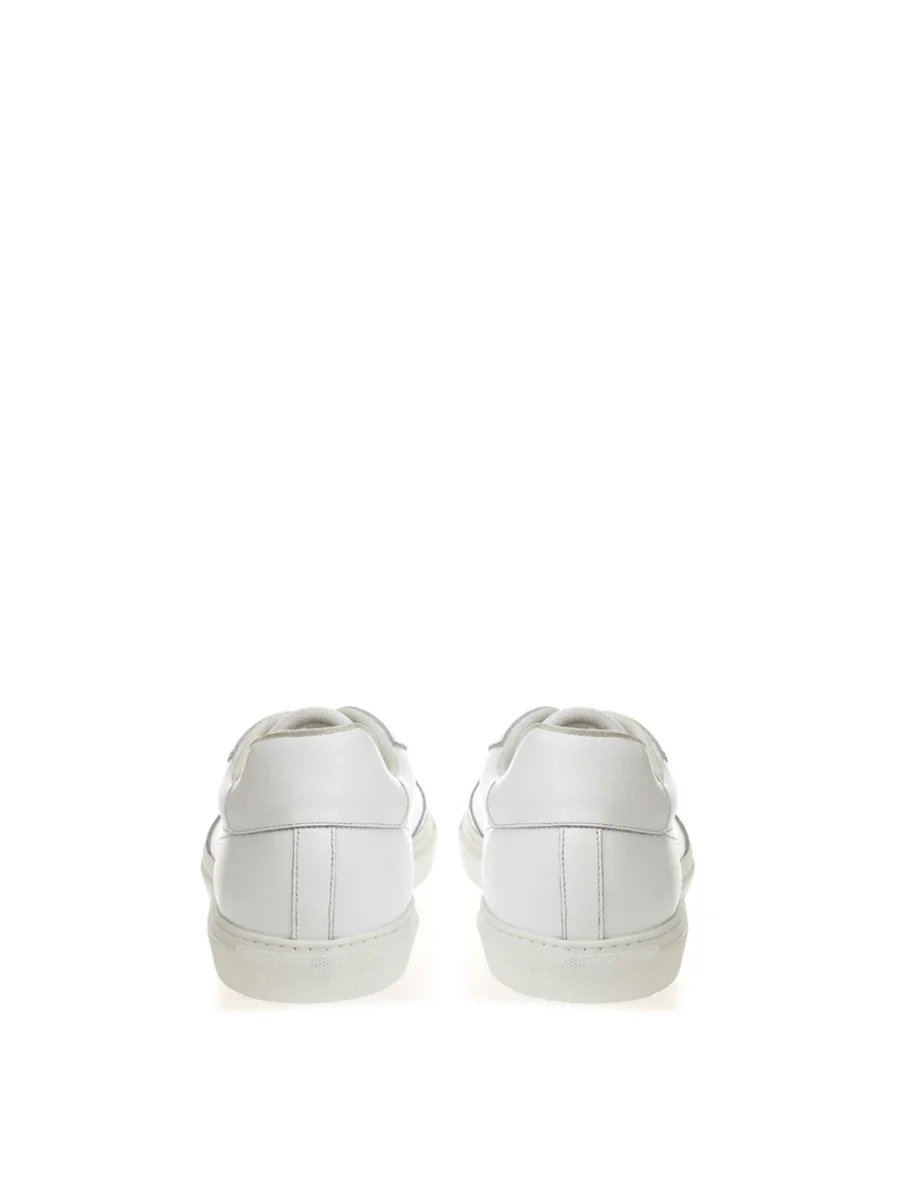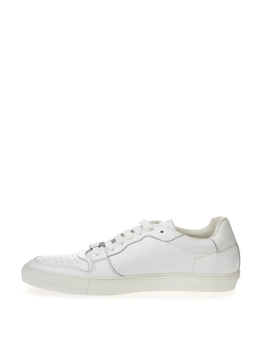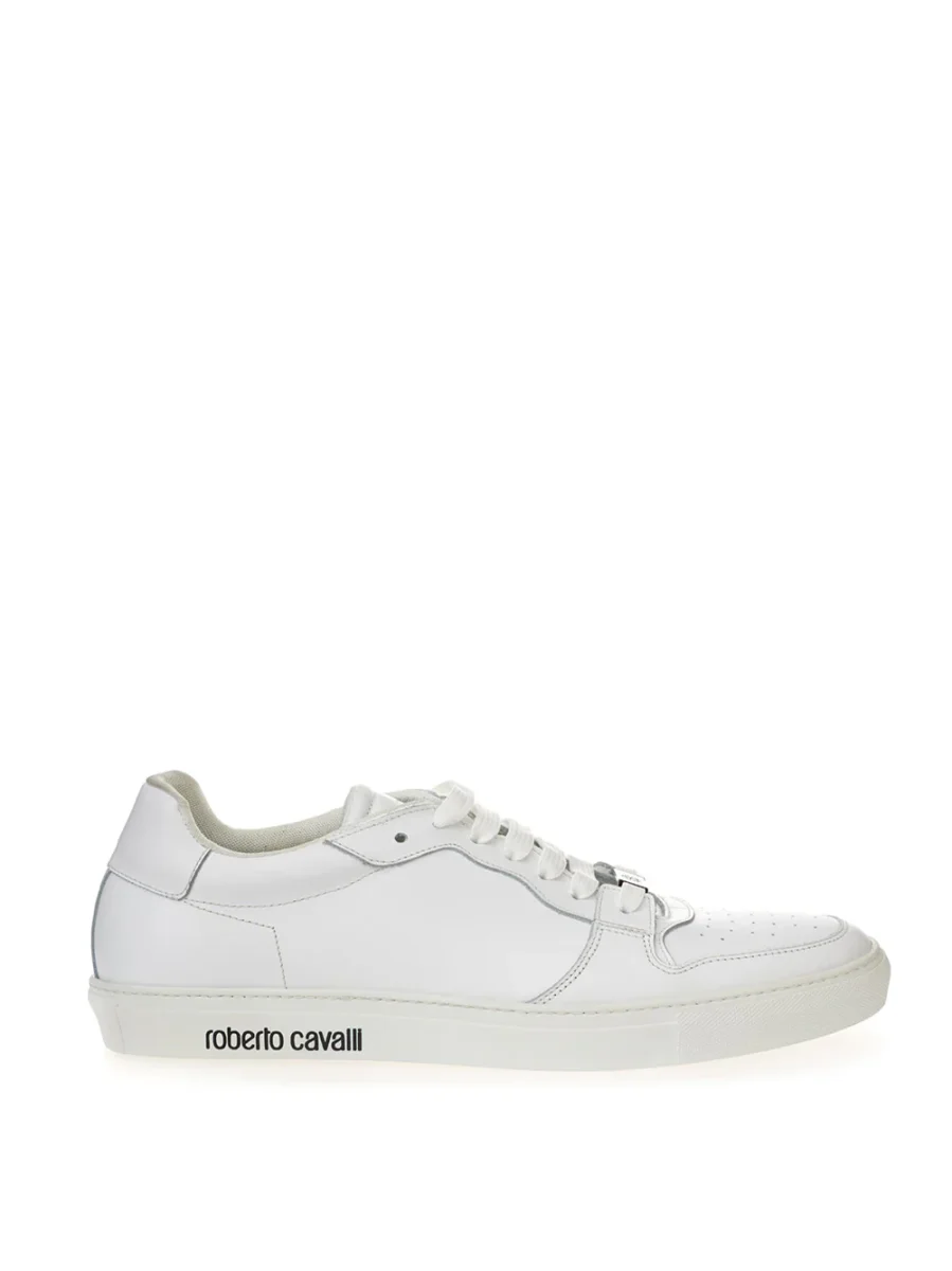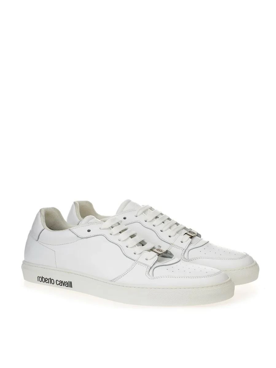 Sneakers Bassa in Pelle Bianca Roberto Cavalli, allacciatura frontale con lacci tono su tono, dettaglio metallico frontale con logo, suola esterna con logo sul lato a contrasto. Composizione: 100% Pelle-Sku interno:22DIC228-232