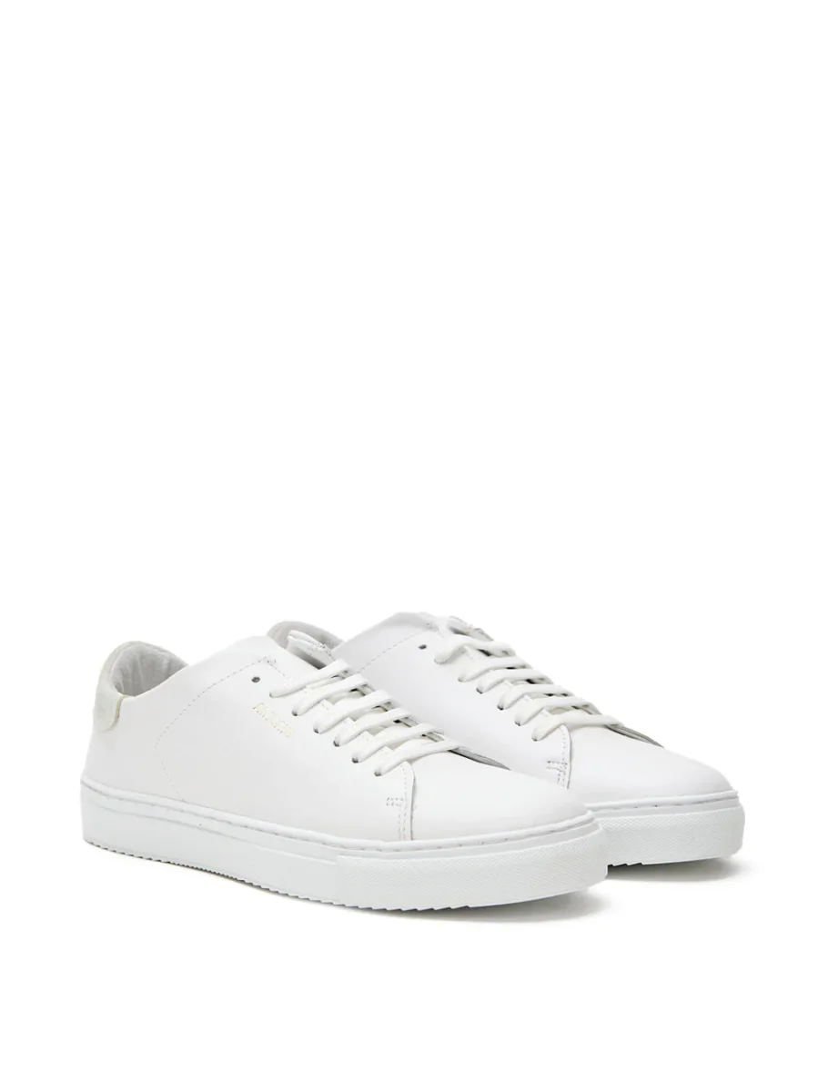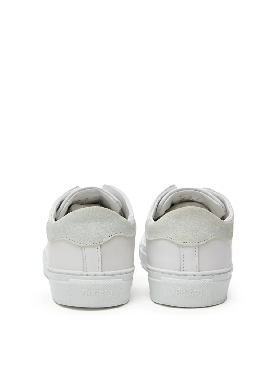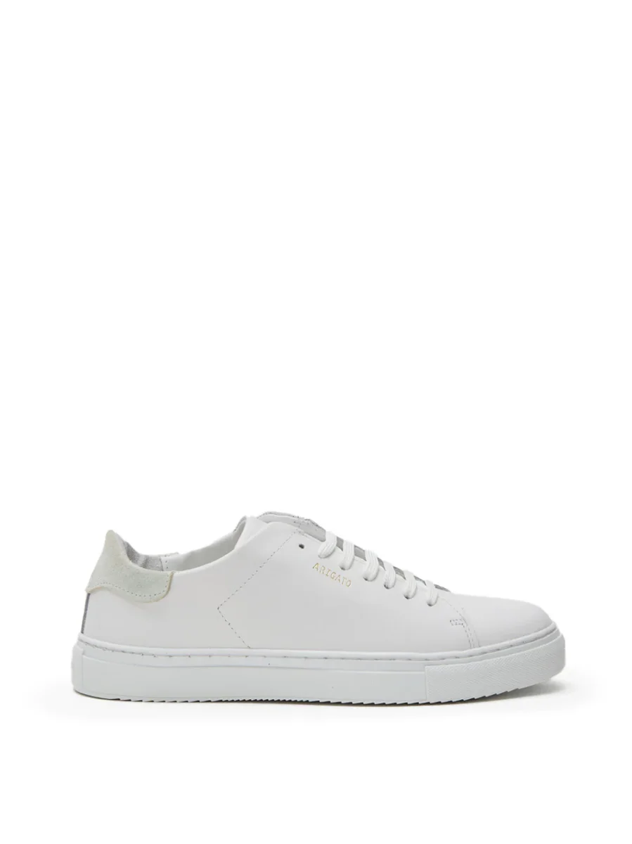 Sneakers Clean 90 in Pelle Bianca Axel Arigato. Allacciatura frontale con lacci tono su tono, punta tonda, suola esterna in gomma tono su tono, sul lato posteriore dettaglio in suede nero. Logo stampato a contrasto sul lato