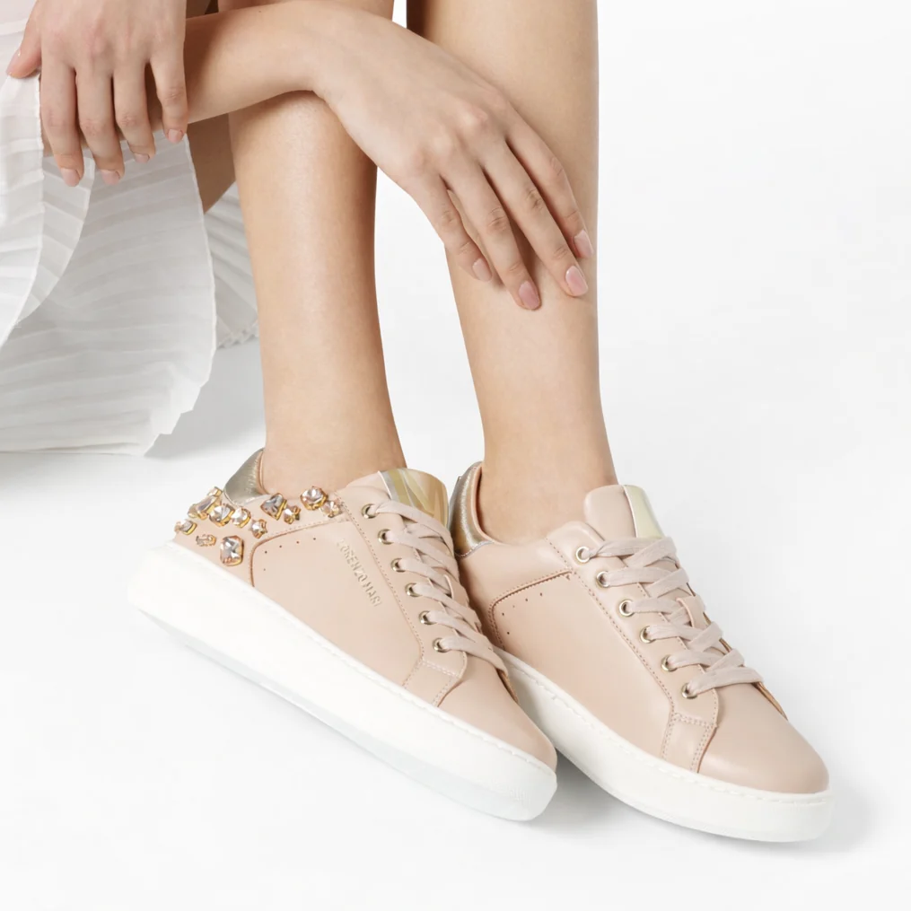 La sneaker “Sirio” combina un design sofisticato con dettagli di carattere, perfetta per chi cerca uno stile elegante e dinamico. Gli strass applicati sul tallone, in tono con la tomaia, donano un tocco di luce discreto, mentre i dettagli a contrasto esaltano il design contemporaneo. Leggera e confortevole, questa sneaker è ideale per un look versatile che si adatta a ogni occasione.