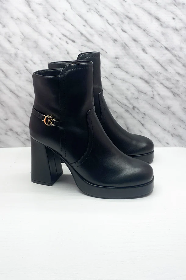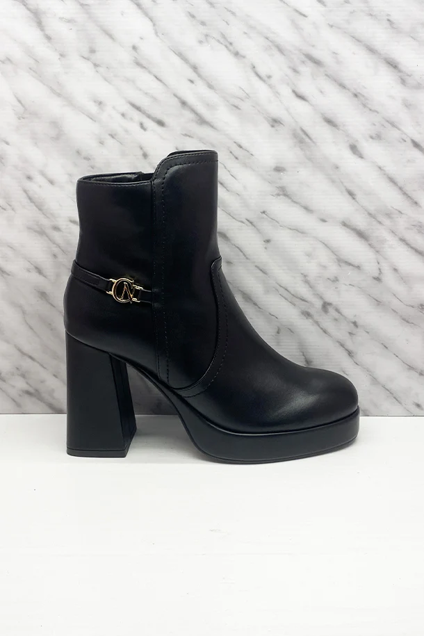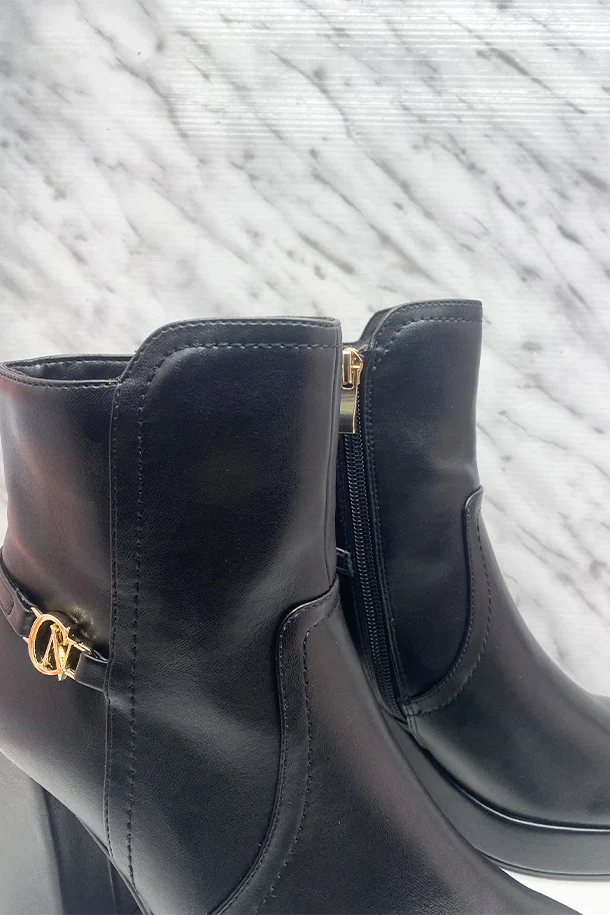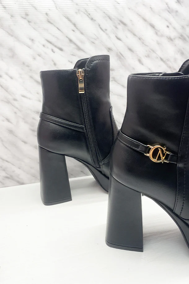 Stivaletti in eco pelle solid color con zip laterale interna, fascia con logo metallico, tacco 80mm in tinta con fondo e suola in gomma