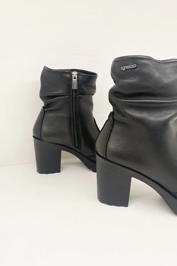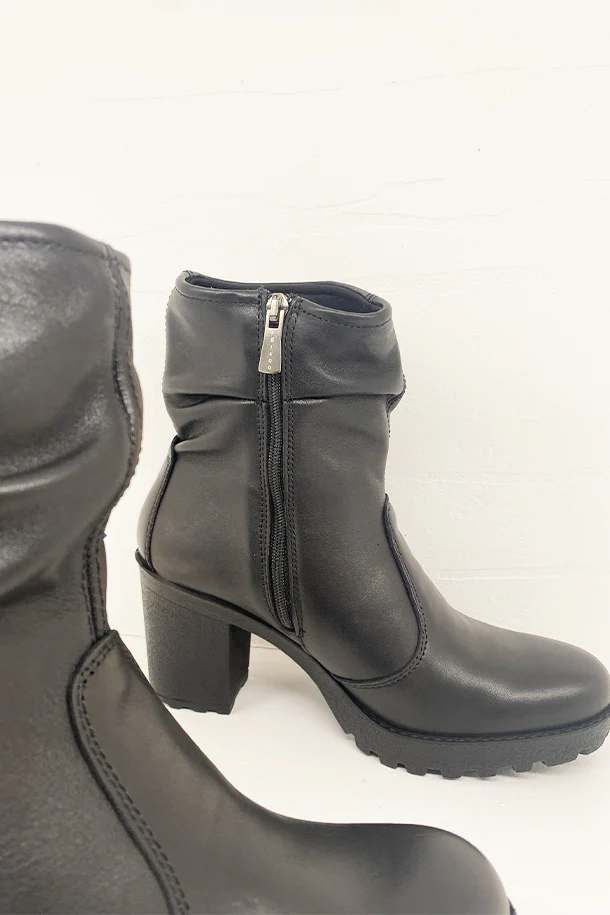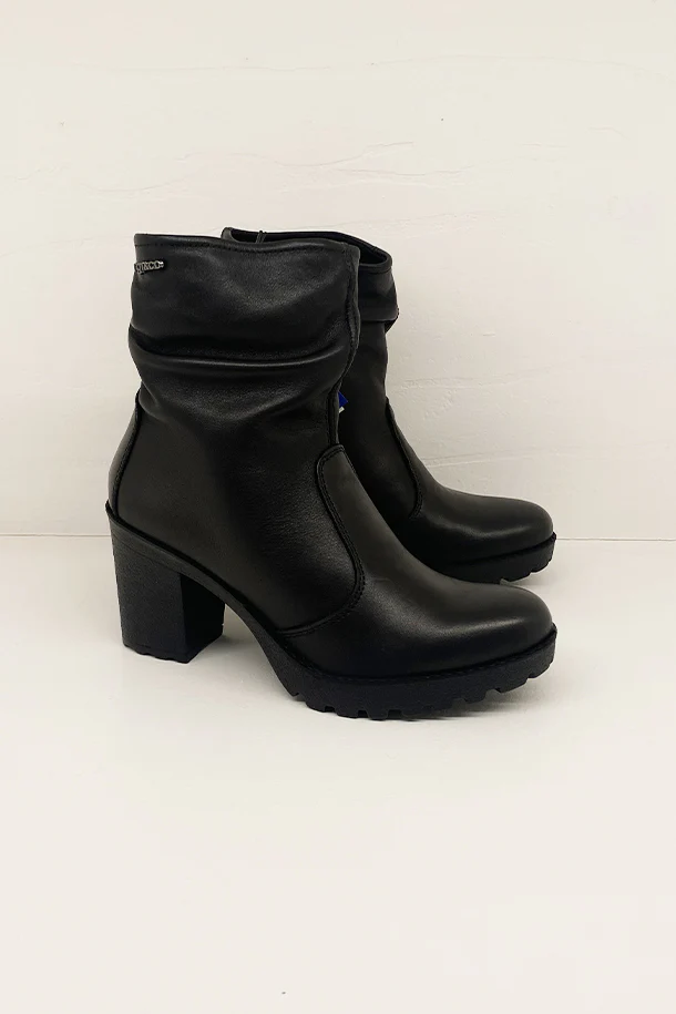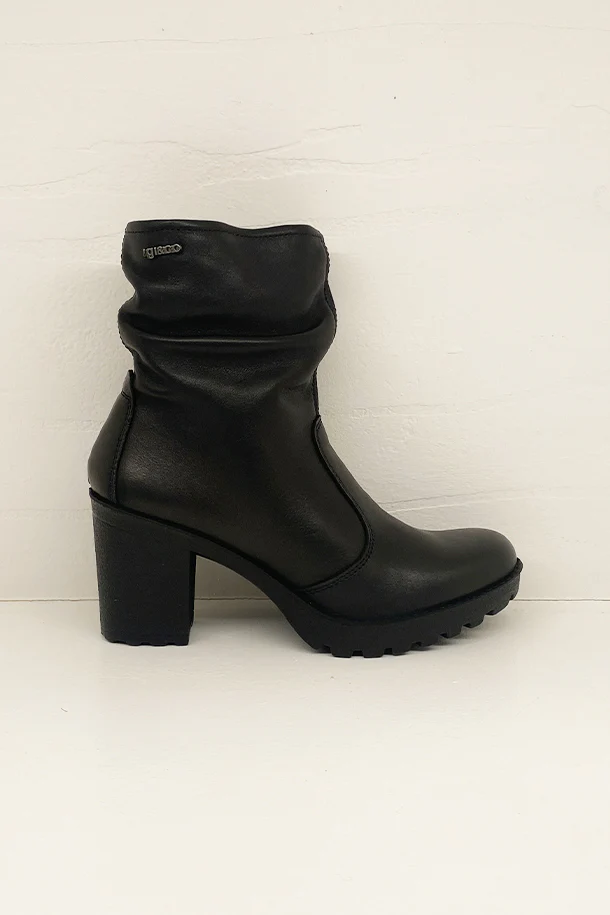 Stivaletti in pelle solid color con gambale morbido, zip laterale interna, logo metallico, interno foderato, tacco 70mm e fondo in gomma