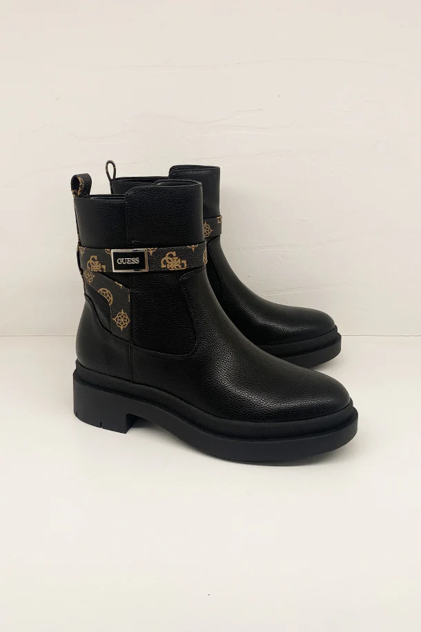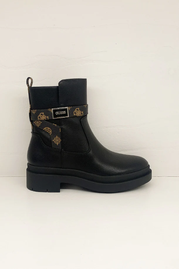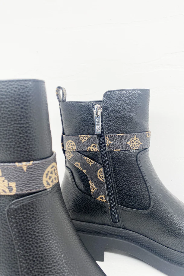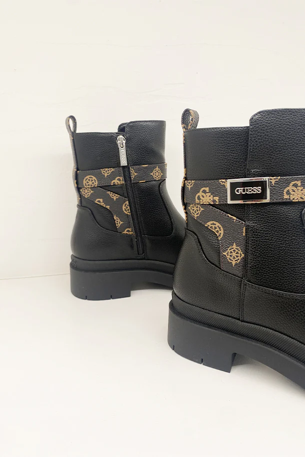 Stivaletti in eco pelle solid color con zip laterale interna, inserto con stampa logata, badge con logo,suola in gomma a carrarmato