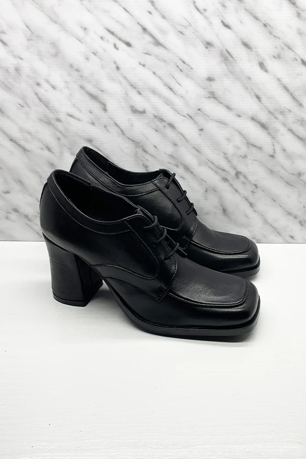 Stivaletti allacciati in eco pelle con punta squadrata, lacci in tinta, tacco 80mm in tinta con fondo e suola in gomma