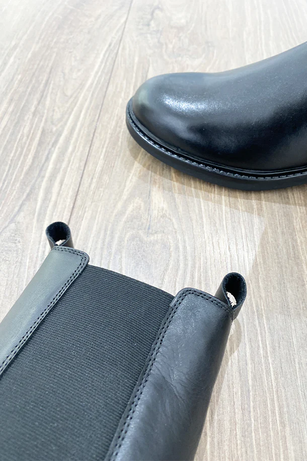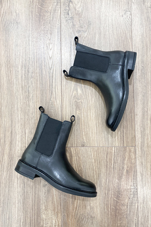 Stivaletti combat in pelle solid color con inserti elastici laterali in tinta, tacco basso in legno con fondo flat in gomma