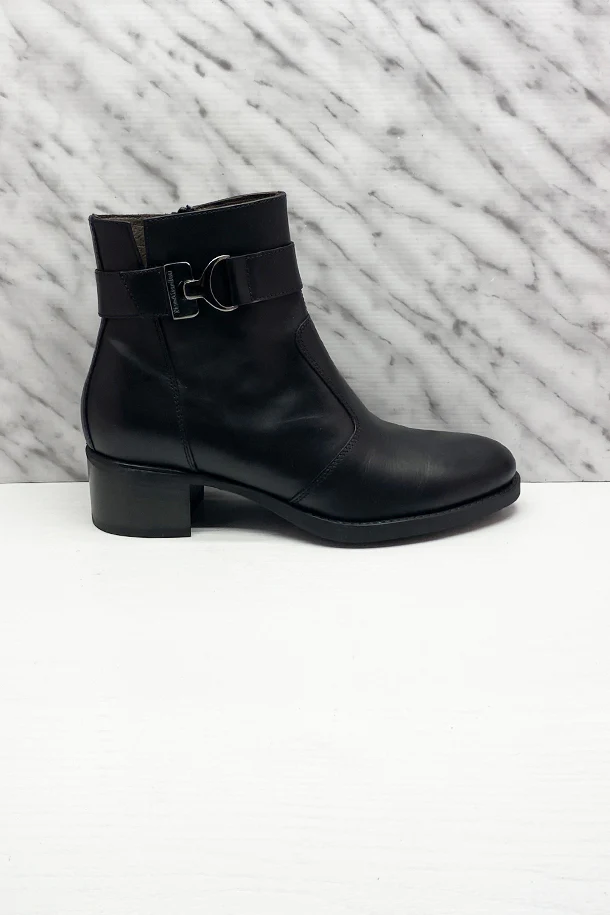Stivaletti in pelle solid color con zip laterale interna, fascia in tinta con fibbia metallica logata, suola interna in pelle, tacco 40mm in legno con fondo e suola in gomma