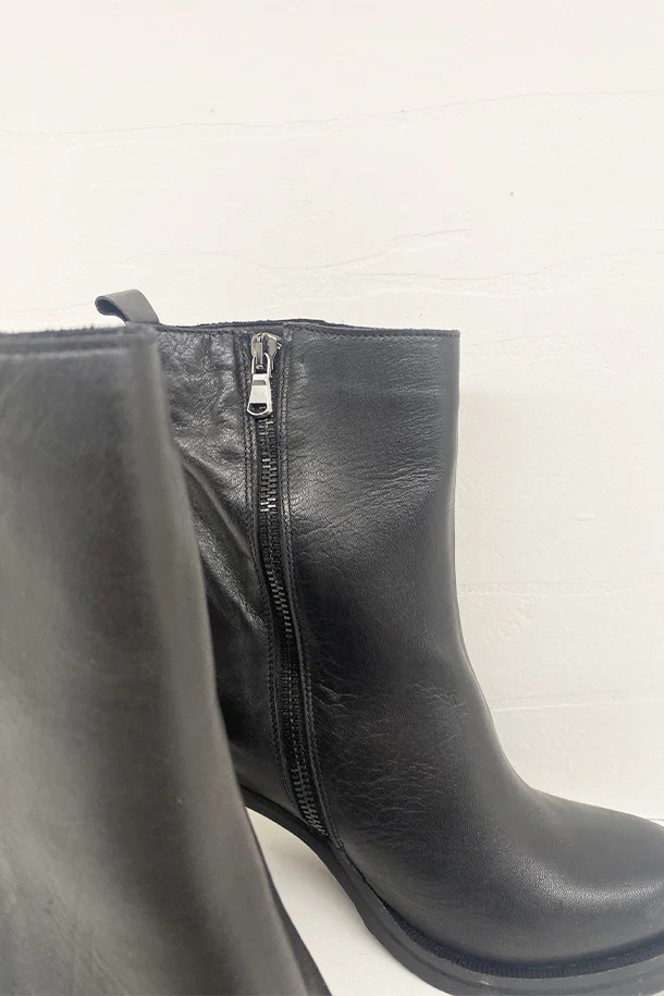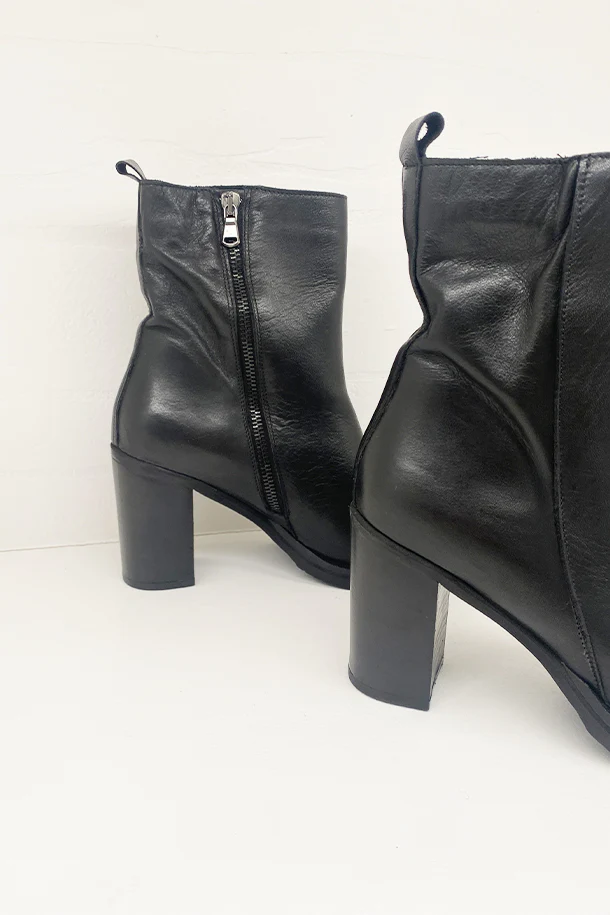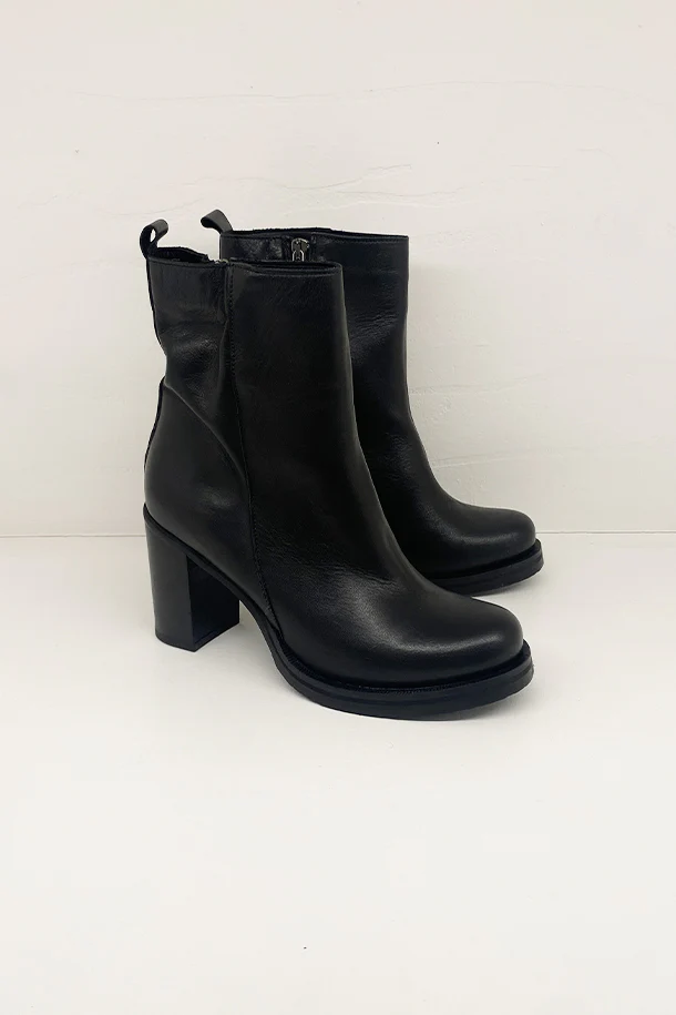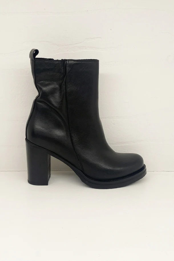 Stivaletti in pelle solid color con zip laterale interna, tacco 70mm in tinta con fondo e suola in gomma
