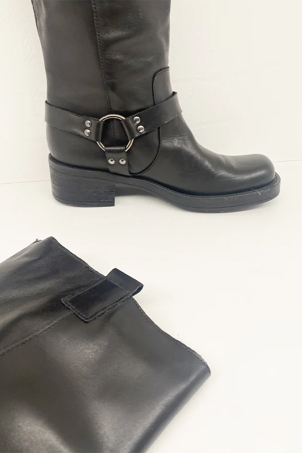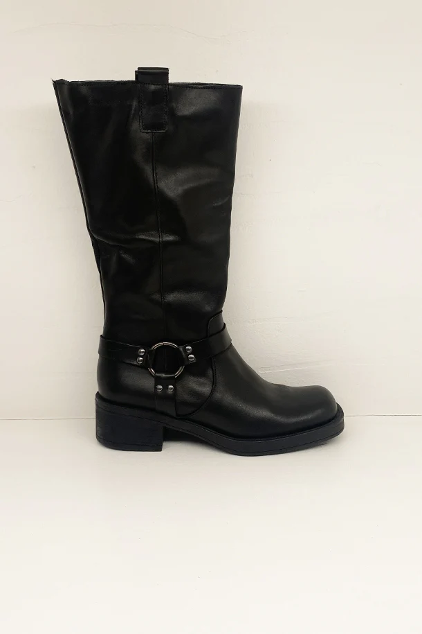 Stivaletti con gambale morbido in pelle solid color, lacci con anelli metallici, interno in pelle, tacco 30mm in legno con fondo e suola in gomma