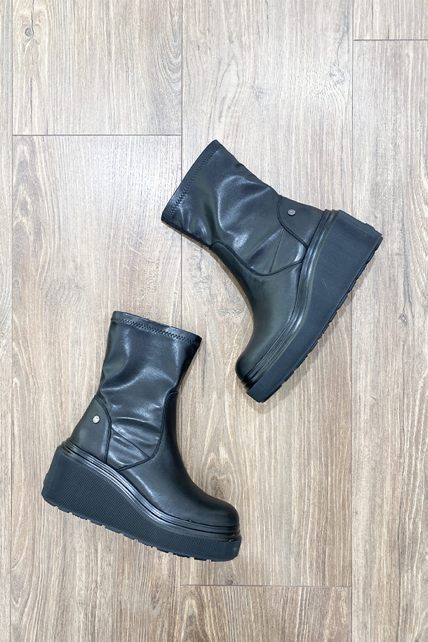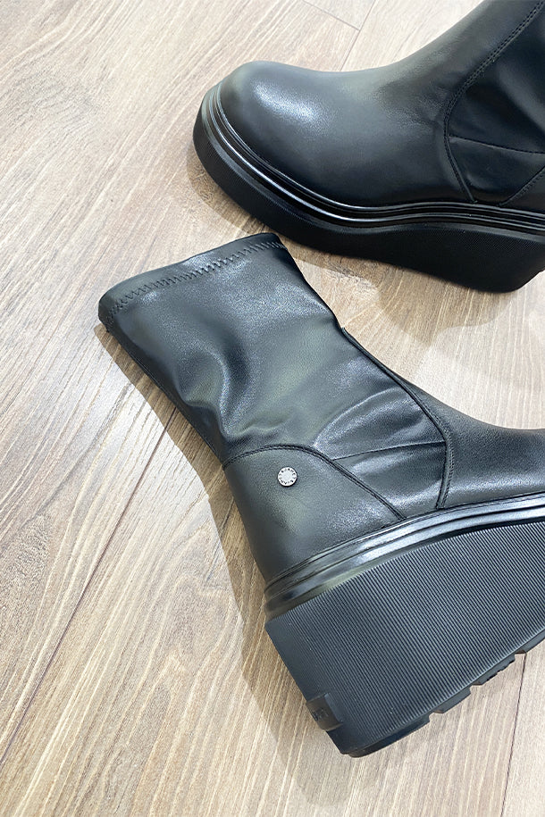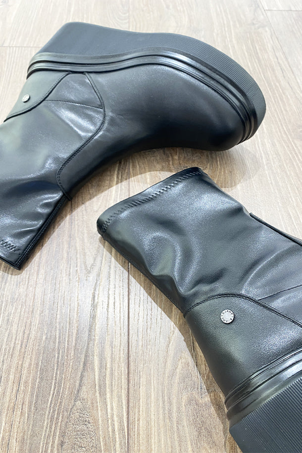 Stivaletti in pelle solid color con gambale morbido, interno in pelle, logo metallico, suola platform 50mm in gomma logata