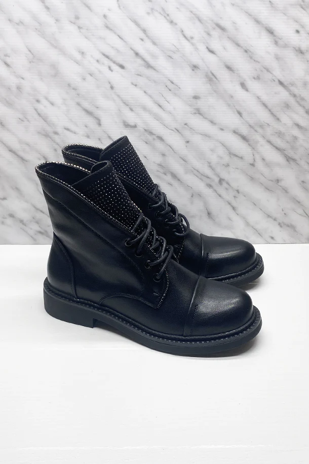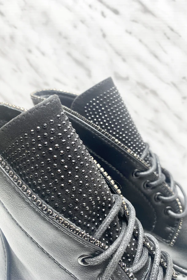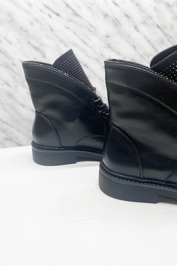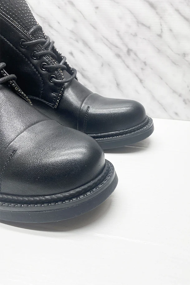 Stivaletti allacciati in eco pelle con micro borchie metalliche in tinta, suola classica in gomma con borchie