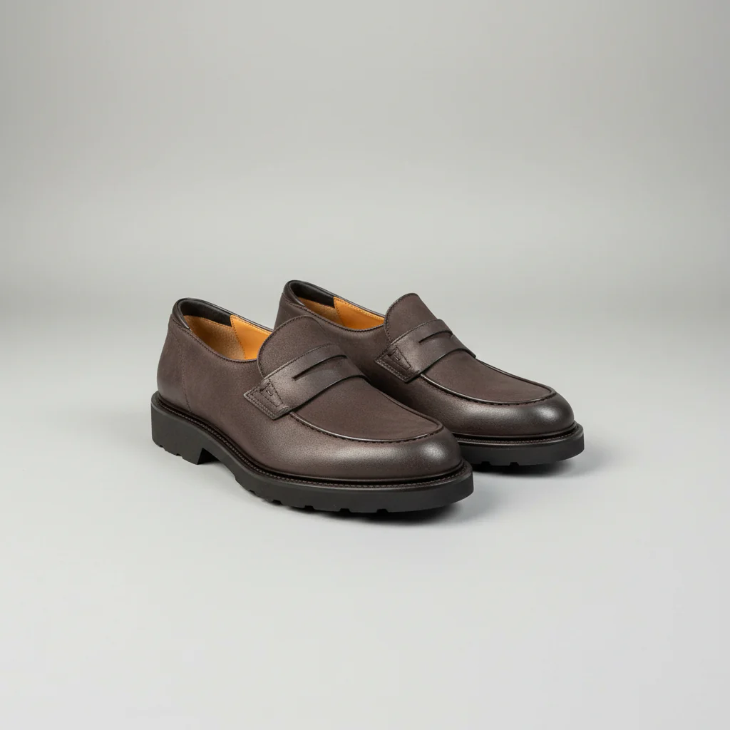 Strongoli è il mocassino da uomo in pelle di vitello effetto setoso firmato Maestri Ciccone: linee pulite, tocco morbido e dettagli sartoriali che parlano italiano. Senza lacci (che comodità!), con calzata facile e profilo essenziale, è pensato per accompagnarti dall’ufficio all’aperitivo con la naturalezza di un classico contemporaneo.
