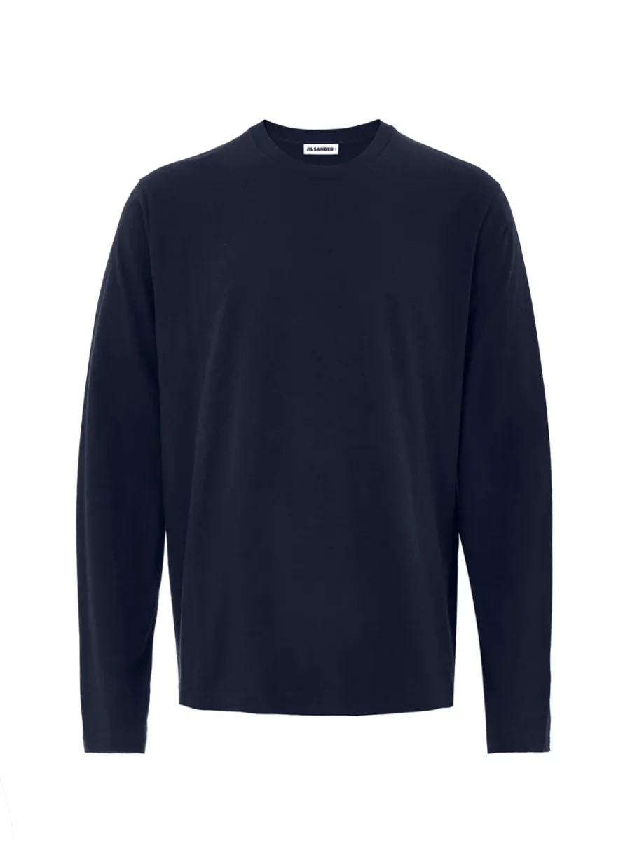 T-Shirt Blu Maniche Lunghe con Logo Ricamo Jil Sander.