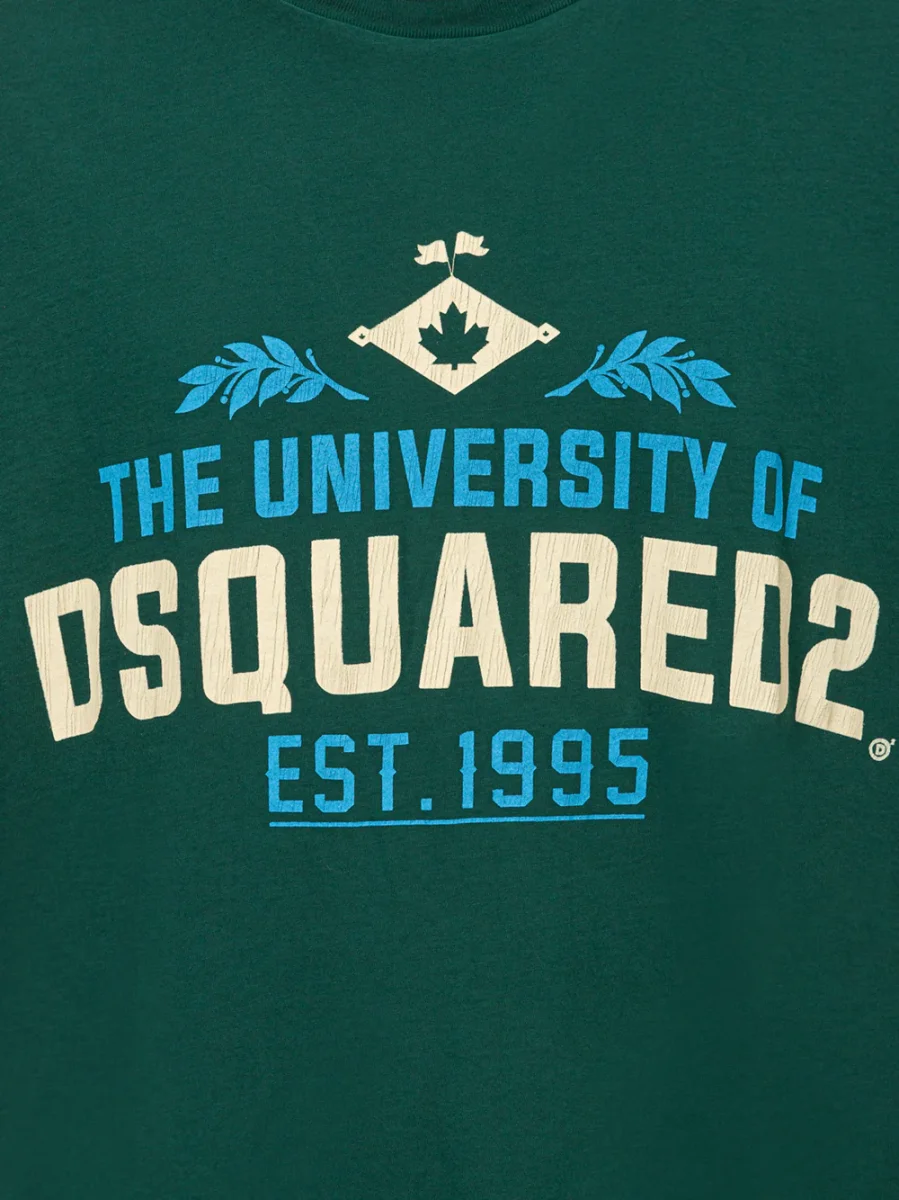 T-shirt Overfit in Cotone Verde con Stampa Dsquared2. Girocollo, maniche corte, stampa frontale con logo, sul retro logo stampato a contrasto. Vestibilità Over. Composizione: 100% Cotone. Sku Interno: 24SET06