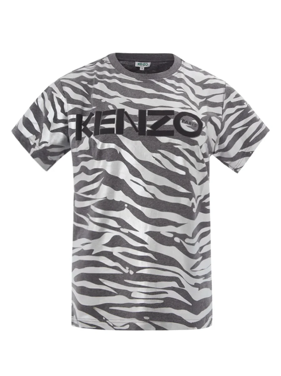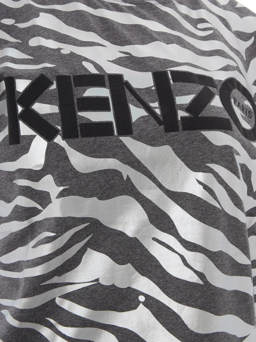 T-Shirt Stampa Animalier Metal Kenzo in grigio metalizzato e logo centrale, stampa allover, girocollo e maniche corte. Composizione: 100% Cotone-Sku interno:23LU137