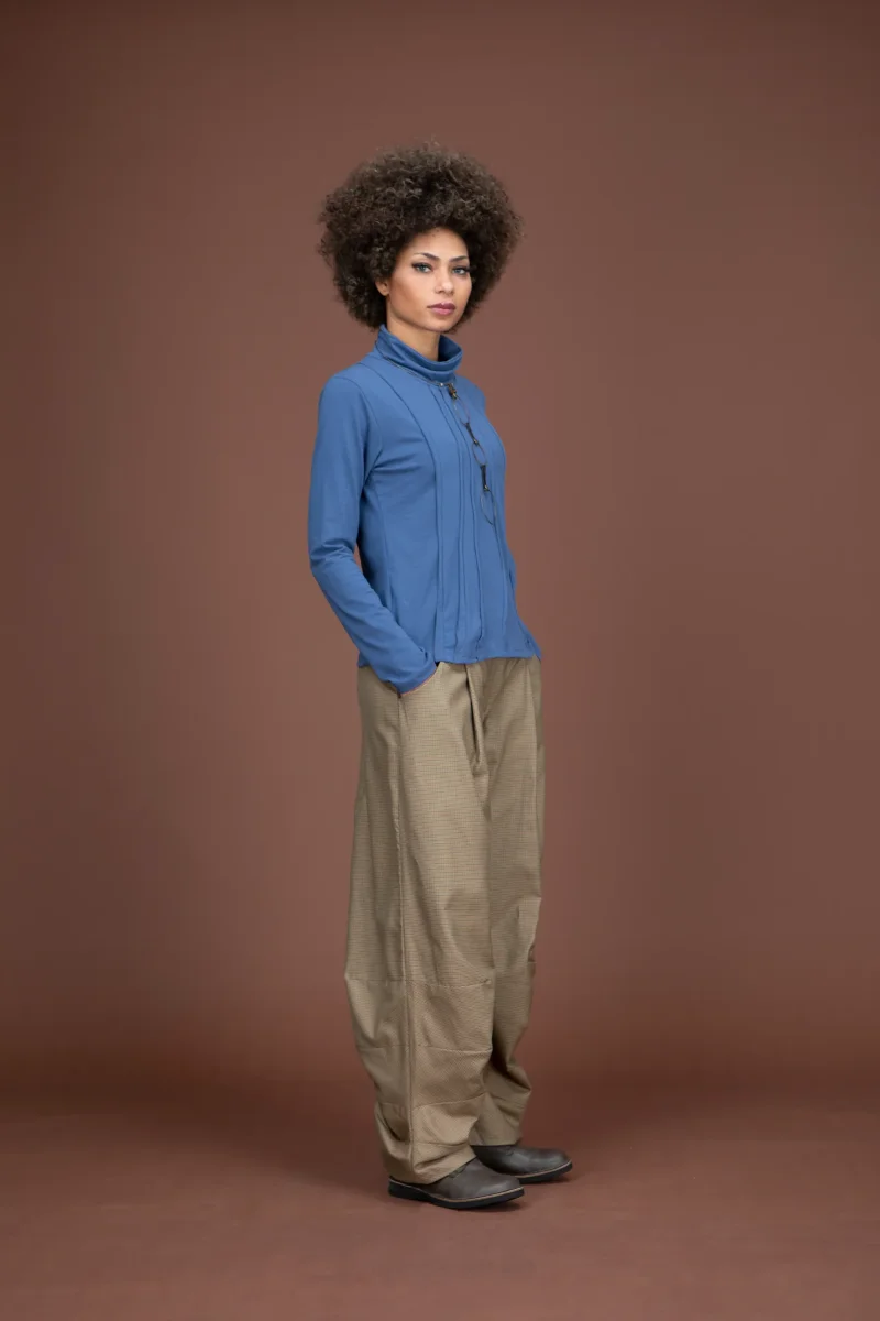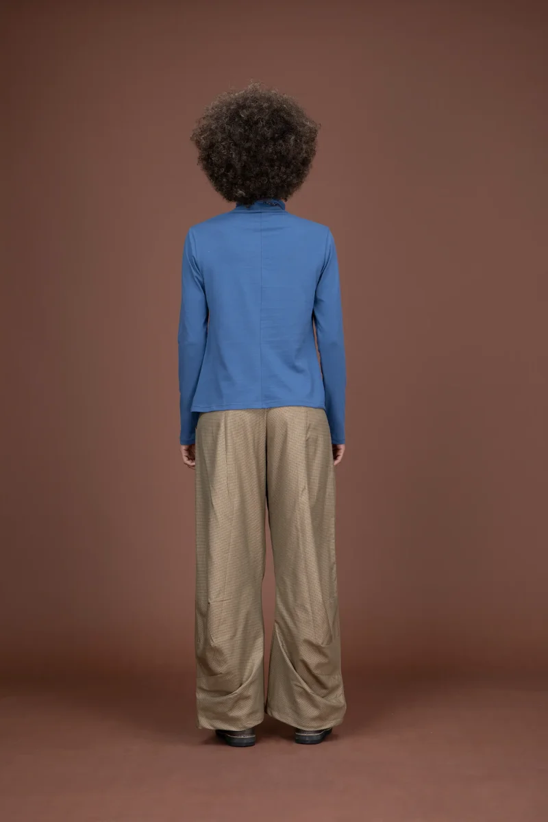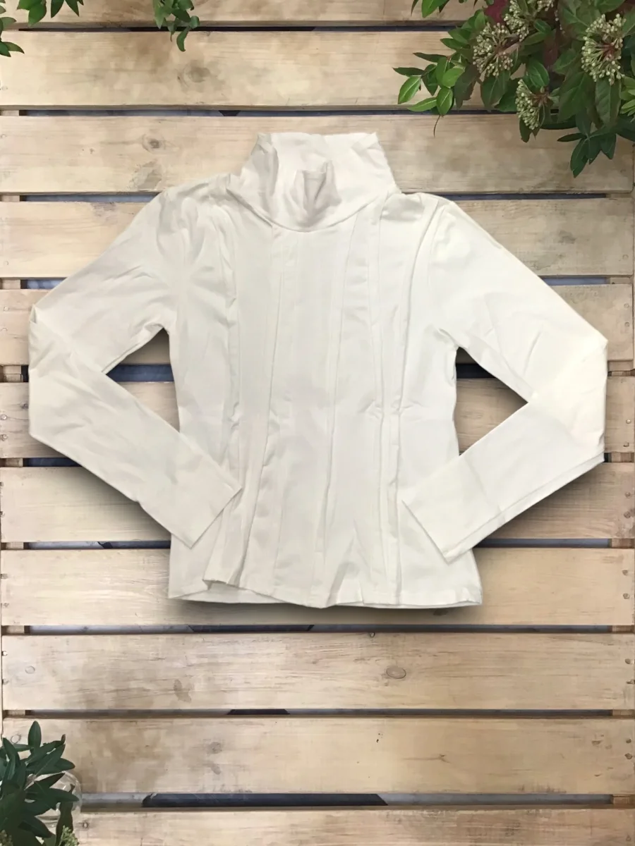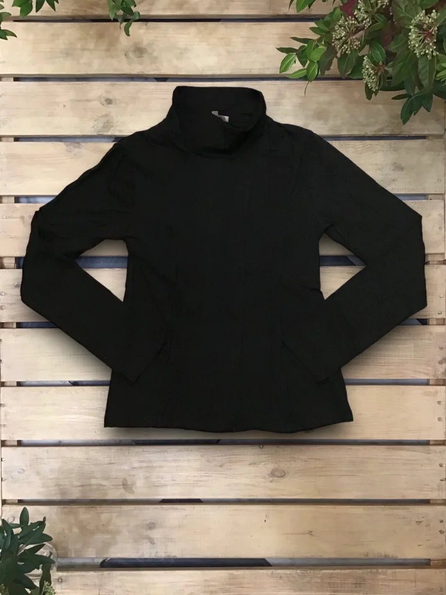 Top in jersey a collo alto, con inserti frontali asimmetrici.