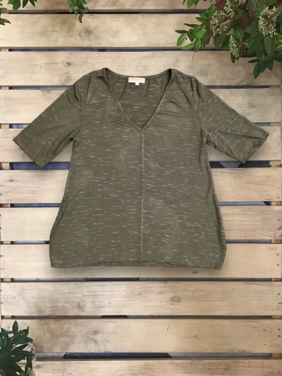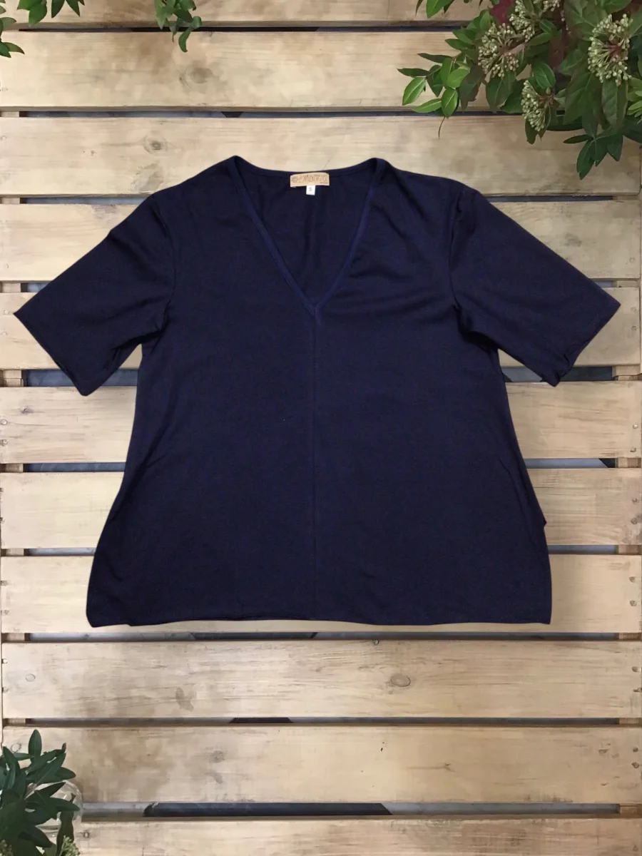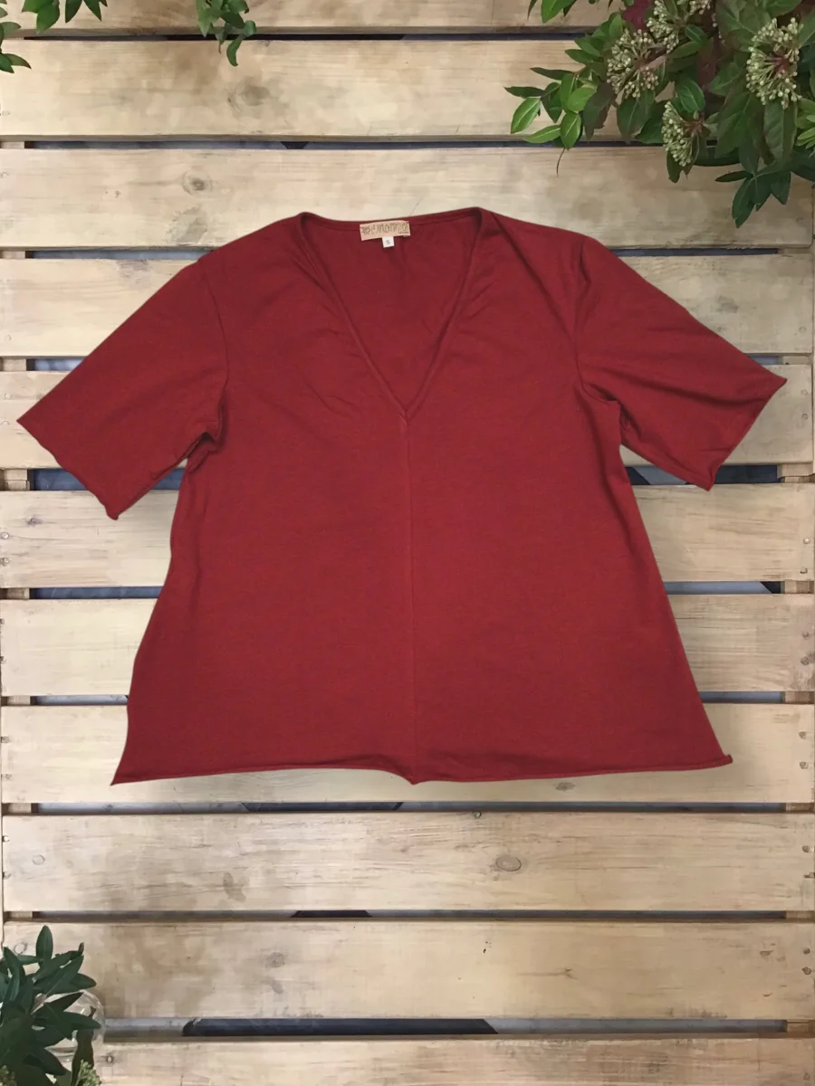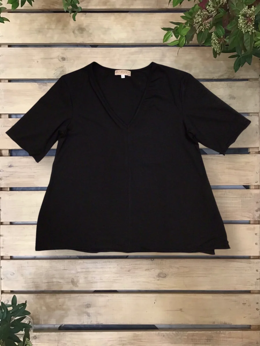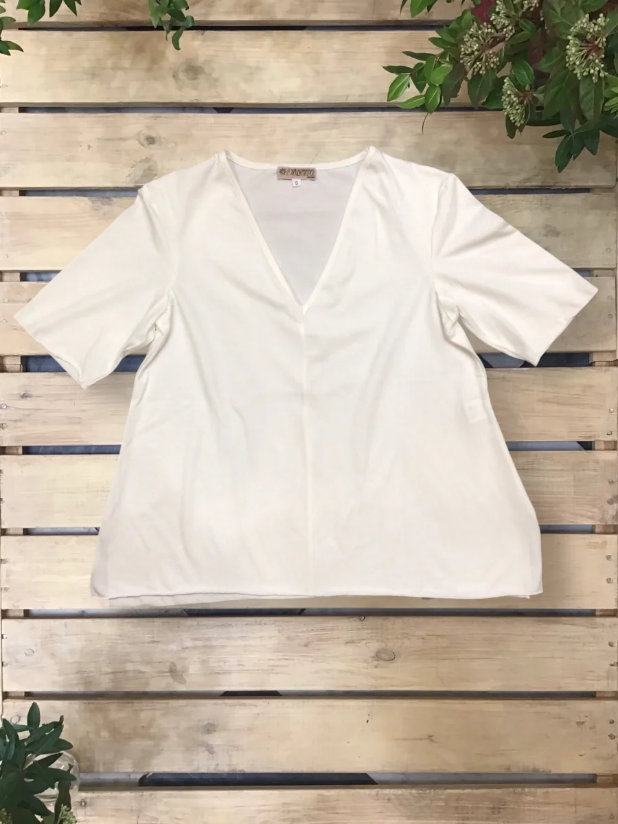 Top in jersey svasato, con scollo a V e piccoli spacchi laterali.