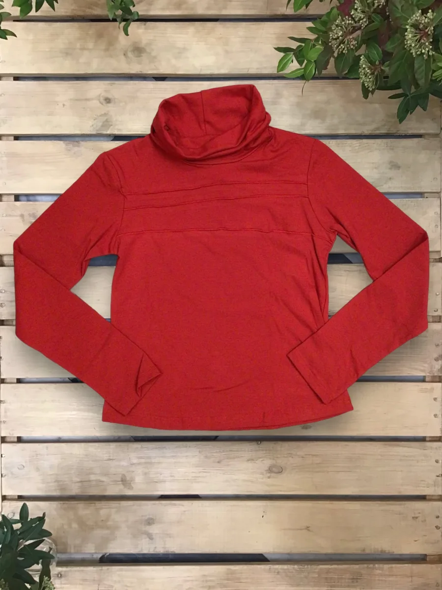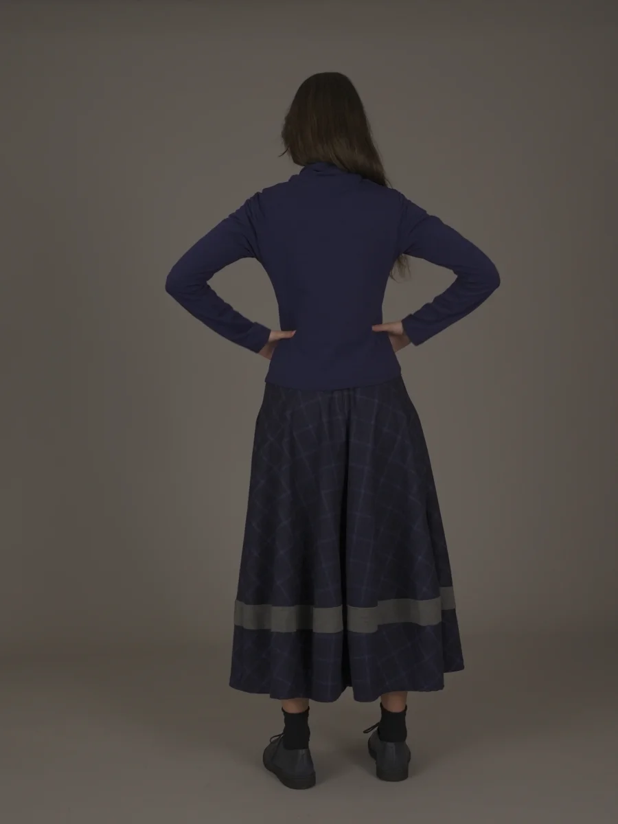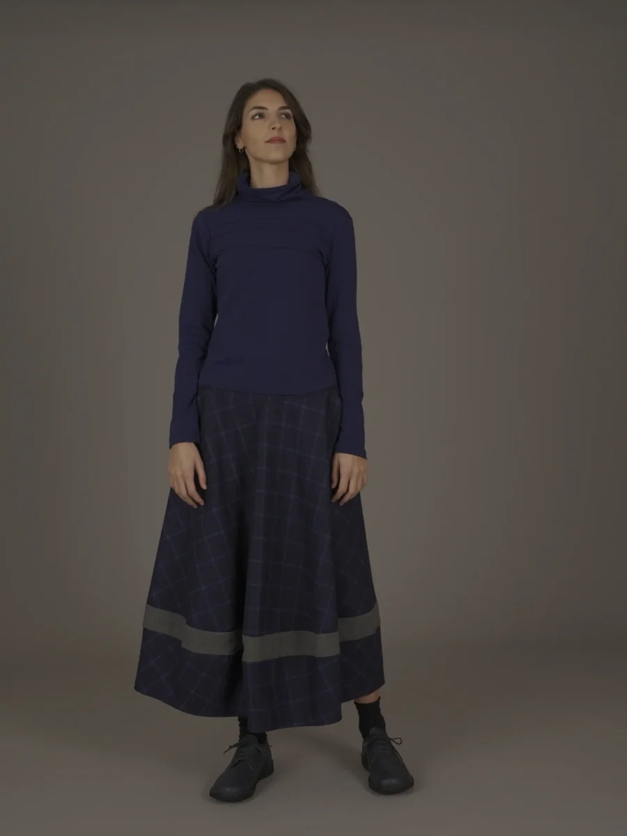 Maglia sagomata con collo alto e nervature davanti.