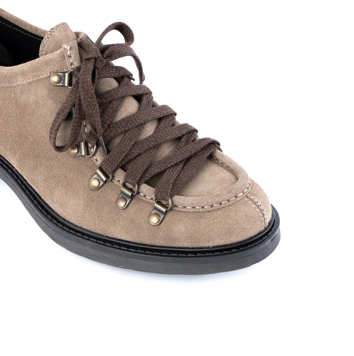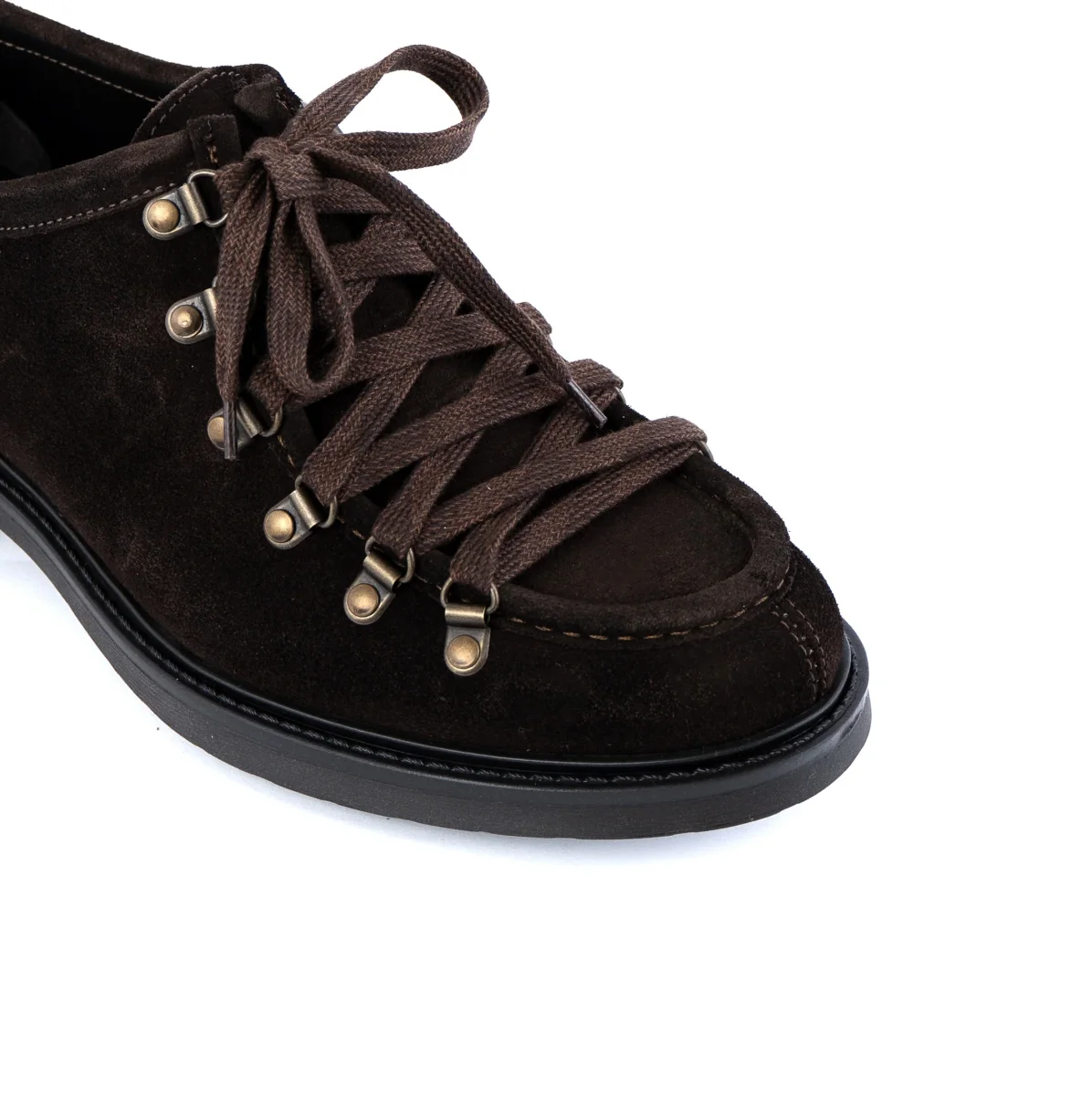 La chiusura con lacci a ganci metallici assicura una calzata stabile e un look distintivo, mentre la fodera interna in vera pelle offre traspirabilità e benessere anche dopo molte ore di utilizzo.