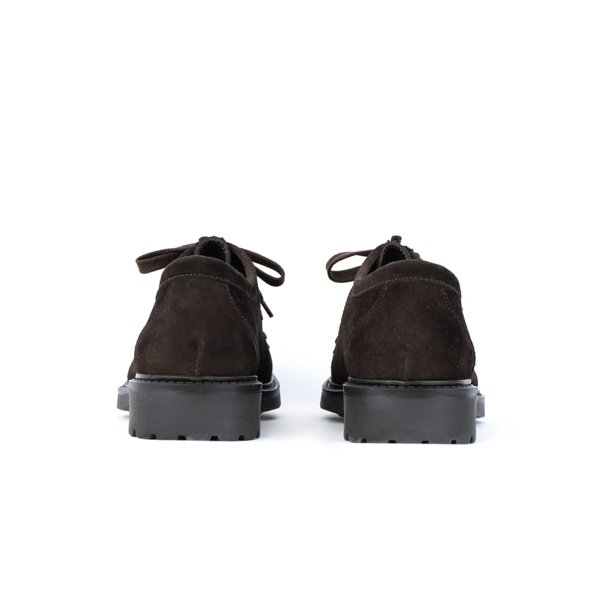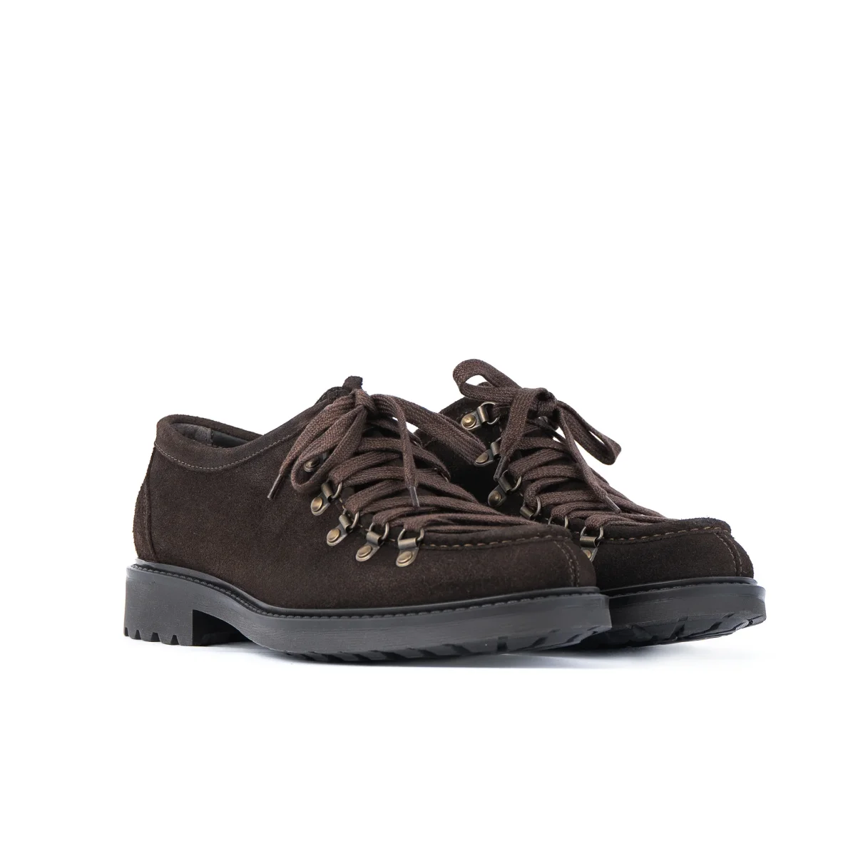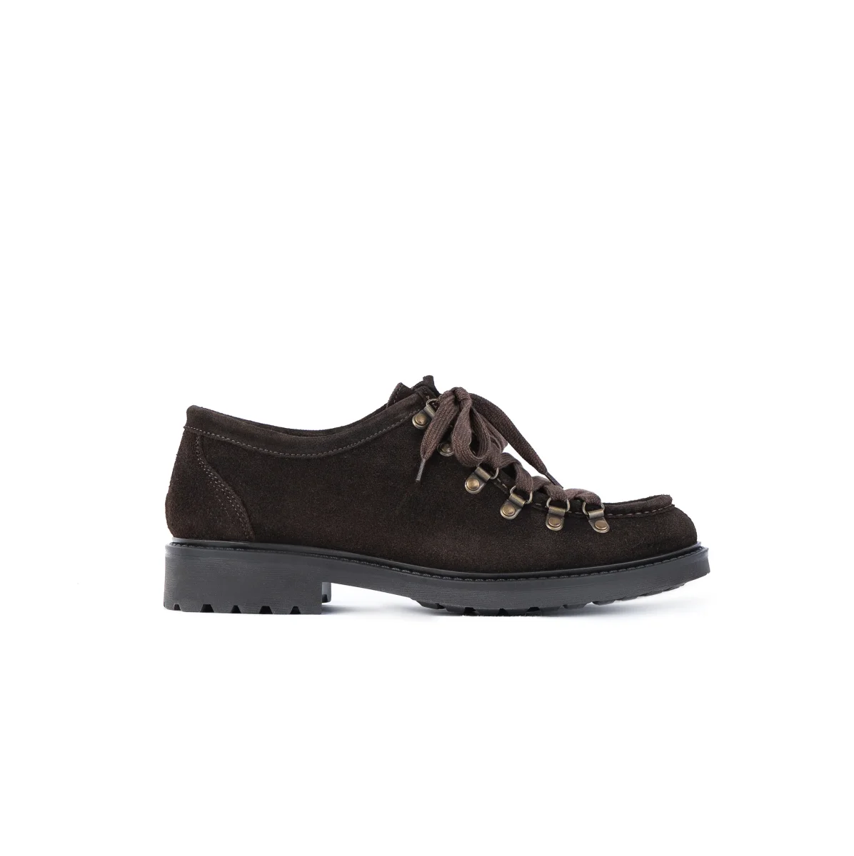 L’Ingegnere è una scarpa dal carattere deciso e autentico, ispirata alle linee del trekking classico ma reinterpretata in chiave urbana. Realizzata artigianalmente in camoscio italiano di alta qualità, unisce robustezza, comfort e stile senza compromessi.