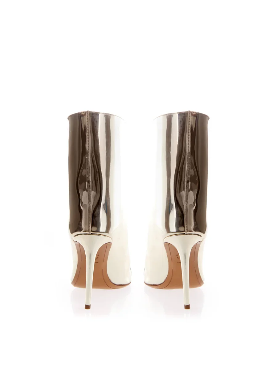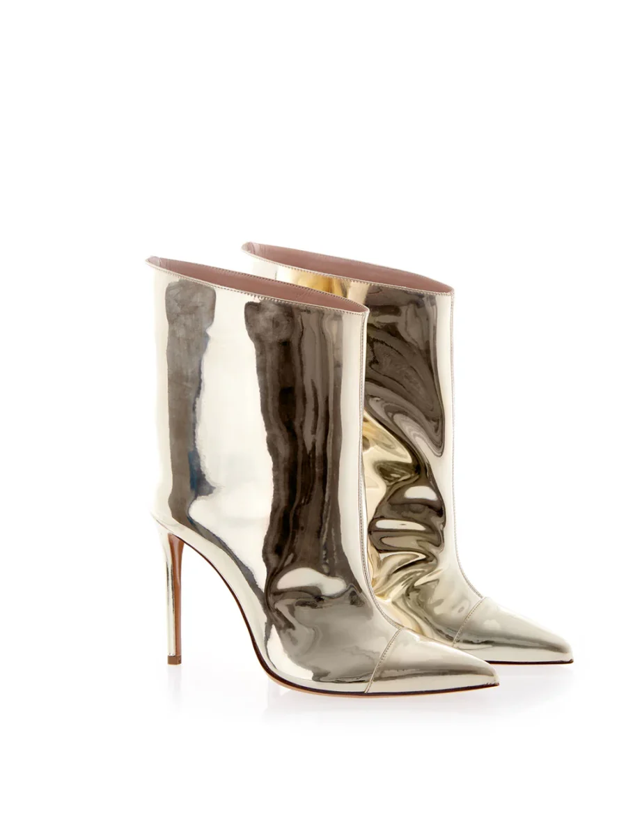 Tronchetto Platino Alextoelow Alexandre Vauthier in pelle effetto specchio, a punta, taglio asimmetrico. Suola interna: 26 cm. Tacco: 10,5 cm-Sku interno:22MA173