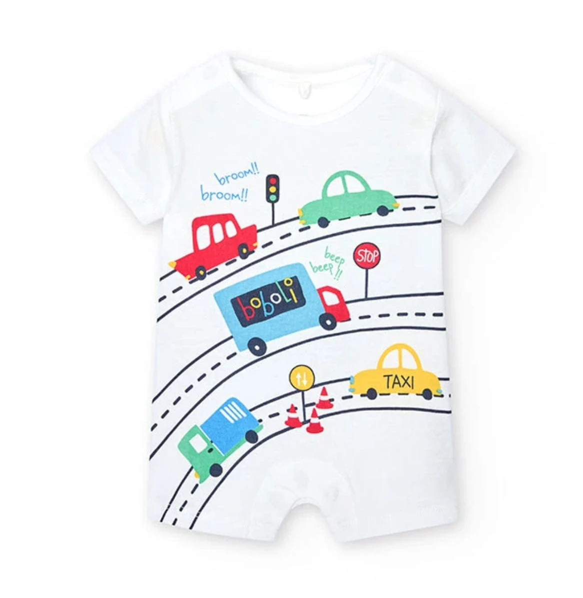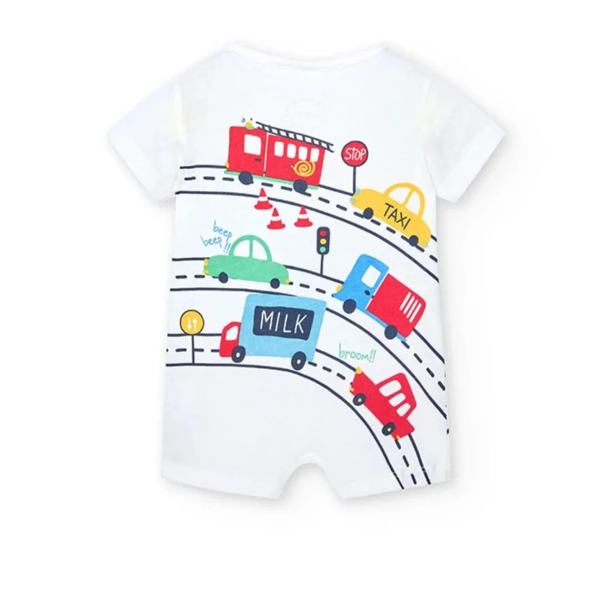Questo è un pelele corto a punto per neonati maschi. È perfetto per l’estate grazie al suo tessuto leggero e traspirante. Il colore principale è il bianco, che lo rende versatile e facile da abbinare. Il design presenta un simpatico stampato, aggiungendo un tocco di allegria. Il collo rotondo e le maniche corte lo rendono comodo per il tuo piccolo, mentre il tessuto a punto garantisce la durata. Questo pelele è l’ideale per mantenere il tuo bambino fresco e alla moda durante i mesi più caldi.