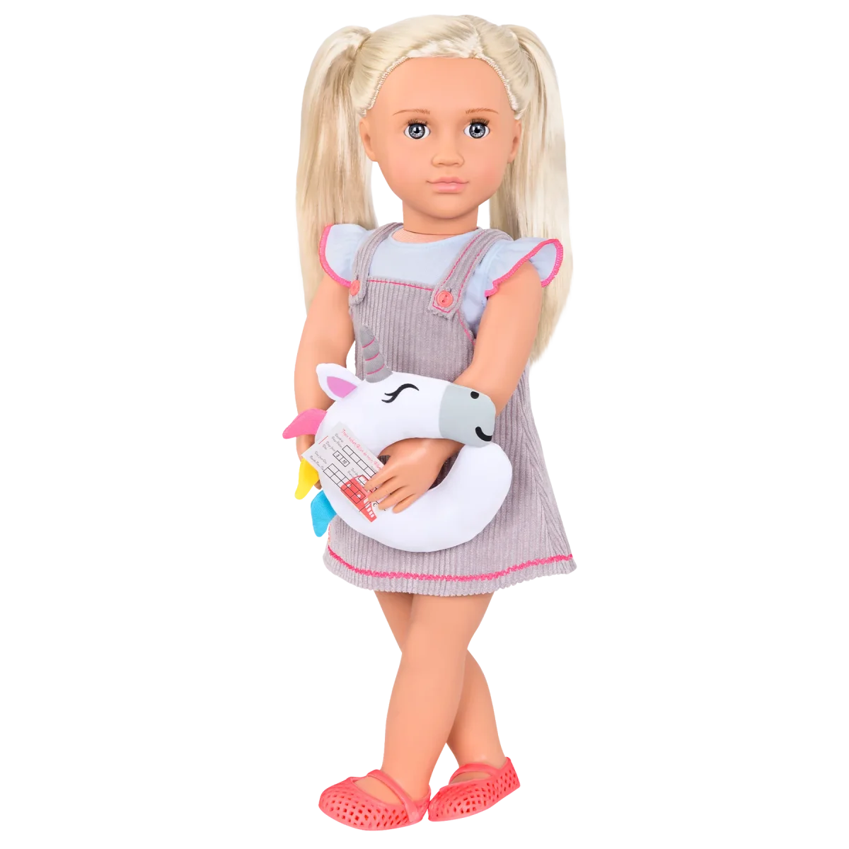 Completa l’outfit con il cuscino unicorno felice, ideale per mantenere la tua bambola comoda durante i suoi viaggi!