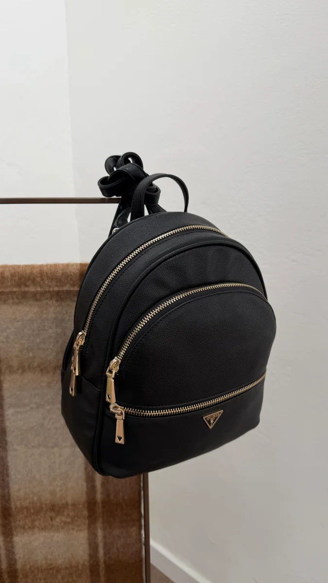 Zaino a spalla in eco pelle solid color, spallacci regolabili, multi scomparti con zip, maxi logo, chiusura con zip, interno foderato con scomparti