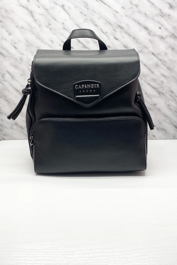 Zaino a spalla in eco pelle solid color con maxi tasca frontale e patta a chiusura con clip magnetica, spallacci regolabili in tinta, chiusure con zip, interno foderato con scomparti